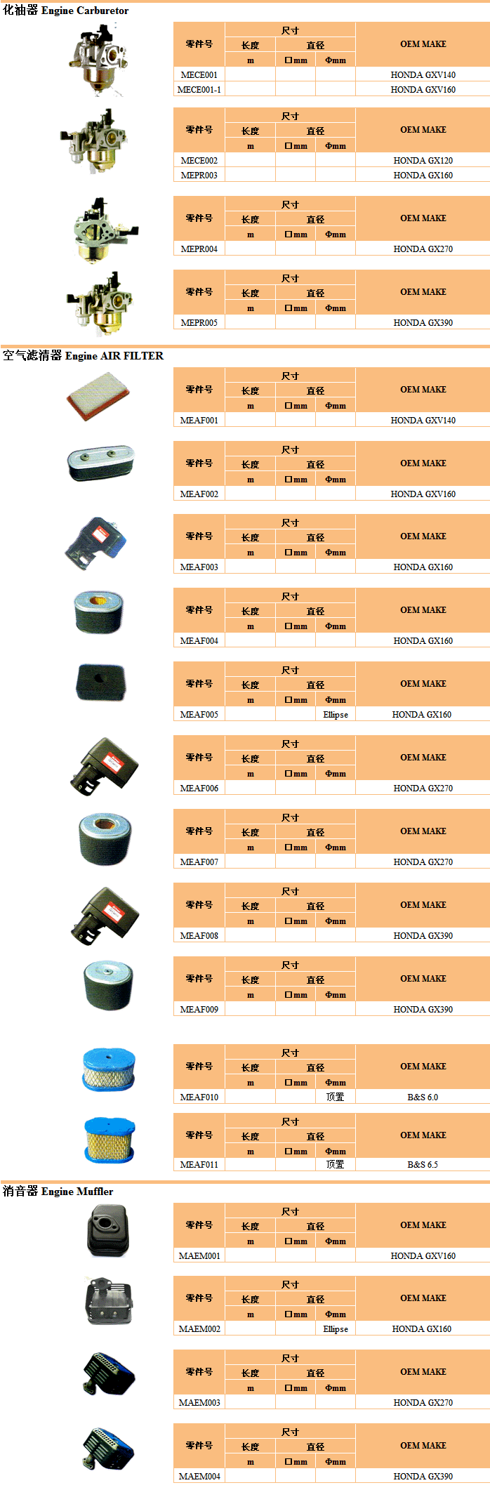 发动机配件4-化油器 空滤 消音器等